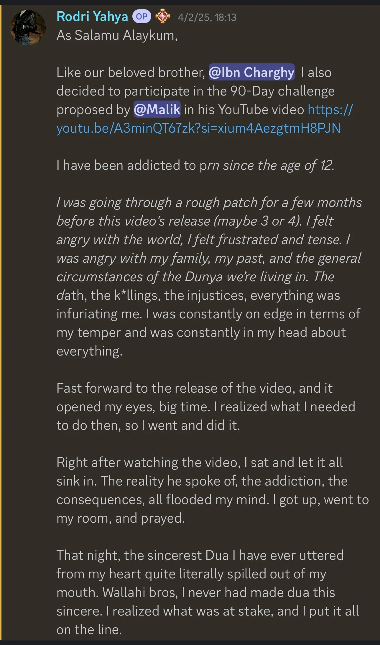 To give you a bit of background, I’ve been a revert to Islam for over four years now, Alhamdulillah, and by the Tawfeeq of Allah, I was able to quit p*rn several years ago. Since then, I’ve dedicated myself to helping thousands of brothers do the same.